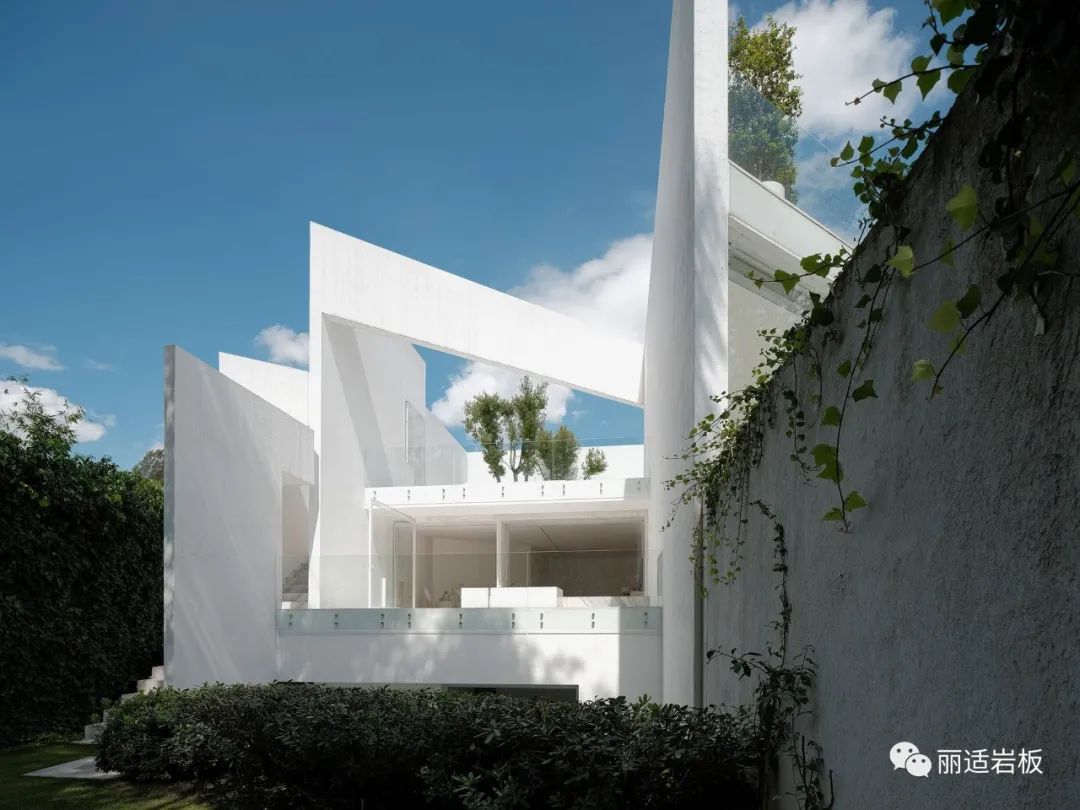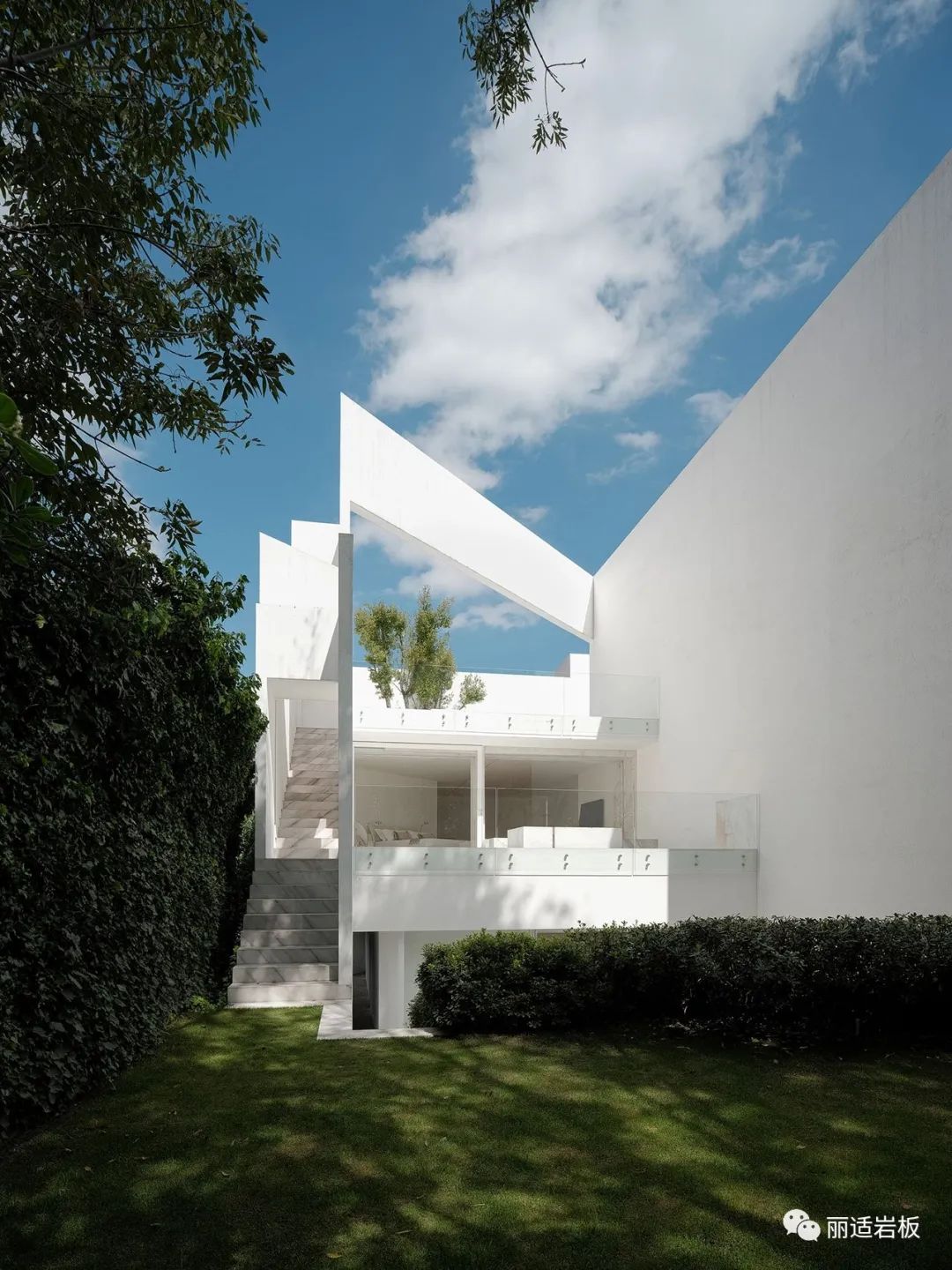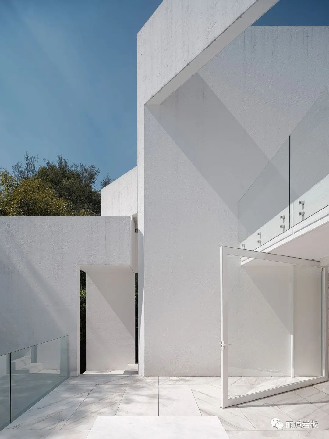 这栋三层楼的房子位于墨西哥城Bosques de las Lomas内绿树成荫的住宅区,建筑工作室全心全意地拥抱极简主义,主要采用全白调色板、立体派几何形状和整洁的内饰。