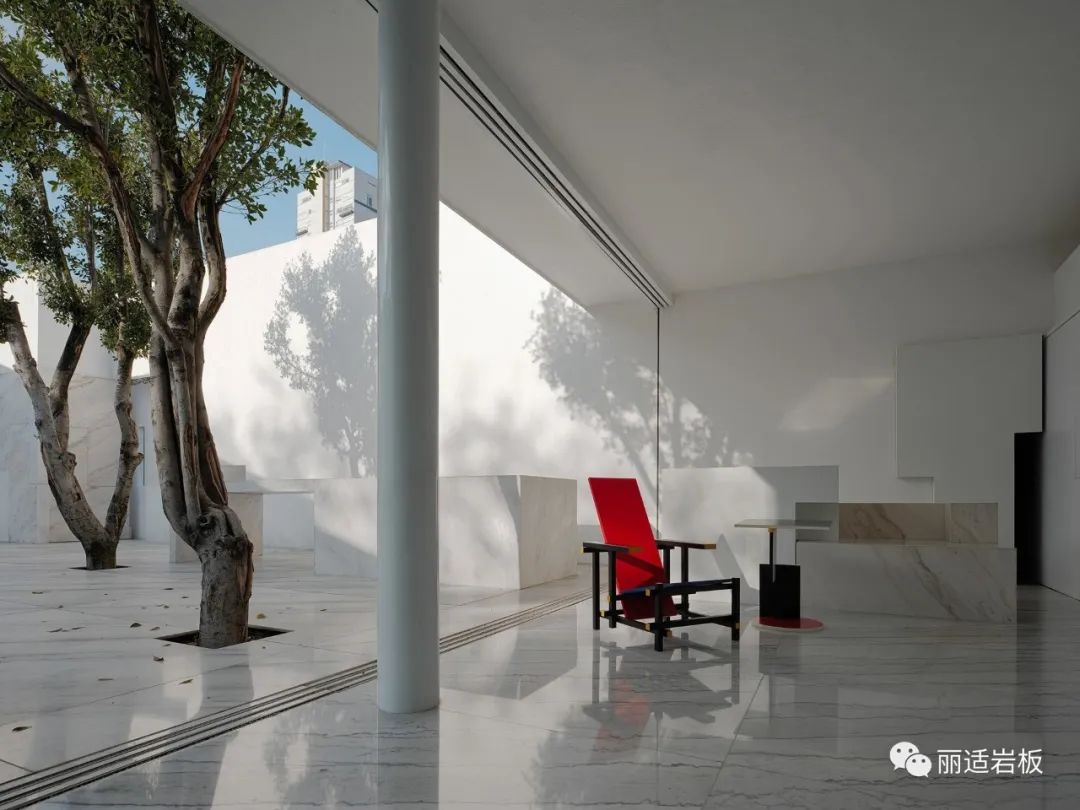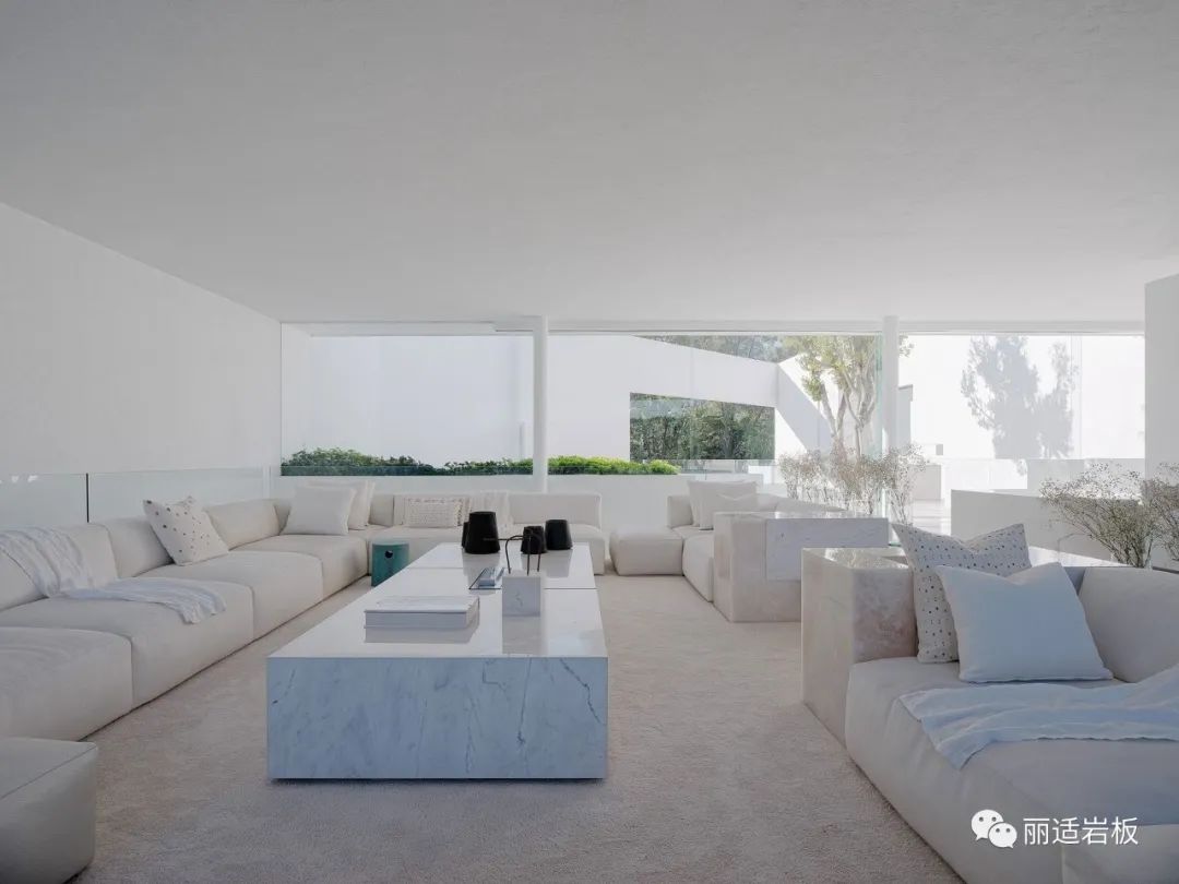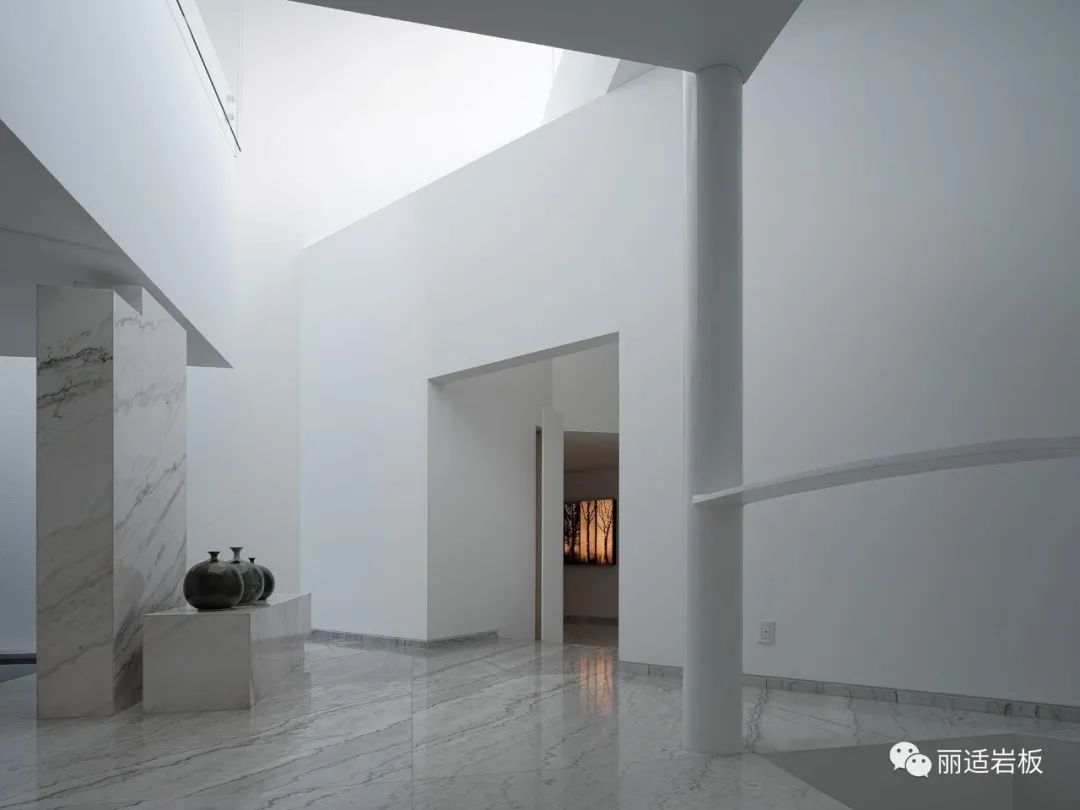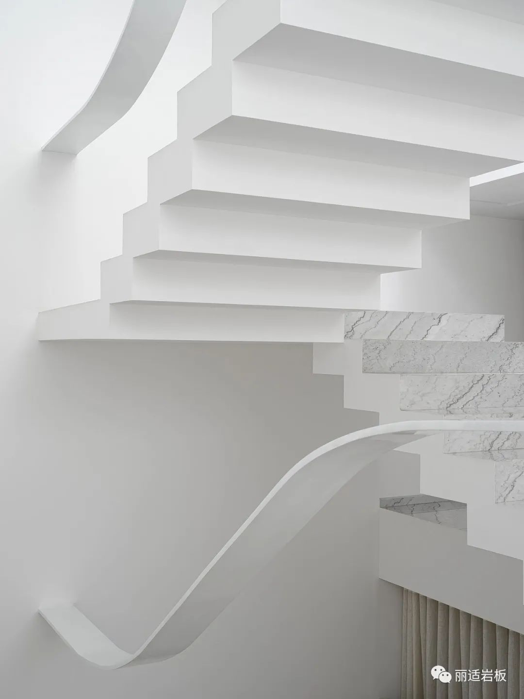 房屋内部的墙地面、内置式家具和台阶等,多采用写意主义的石纹元素材料,拥有自然细腻的温润质地,在整个建筑中建立宽敞的视觉联系。
